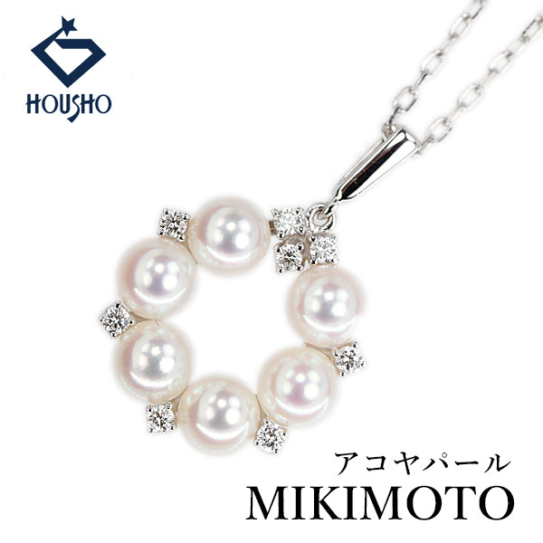 ミキモト アコヤ真珠 ネックレス ダイヤモンド K18ホワイトゴールド MIKIMOTO サークル ラウンド 円 丸【中古】【906053】