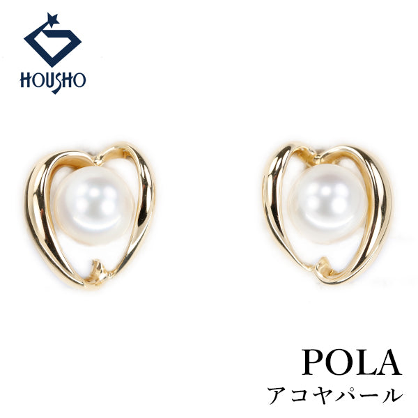 商品名 ポーラ アコヤ真珠 ピアス K18イエローゴールド POLA ハート 透かし 一粒パール