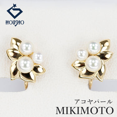 商品名 ミキモト アコヤ真珠 イヤリング K18イエローゴールド MIKIMOTO 植物 ボタニカル 葉 リーフ ベビーパール