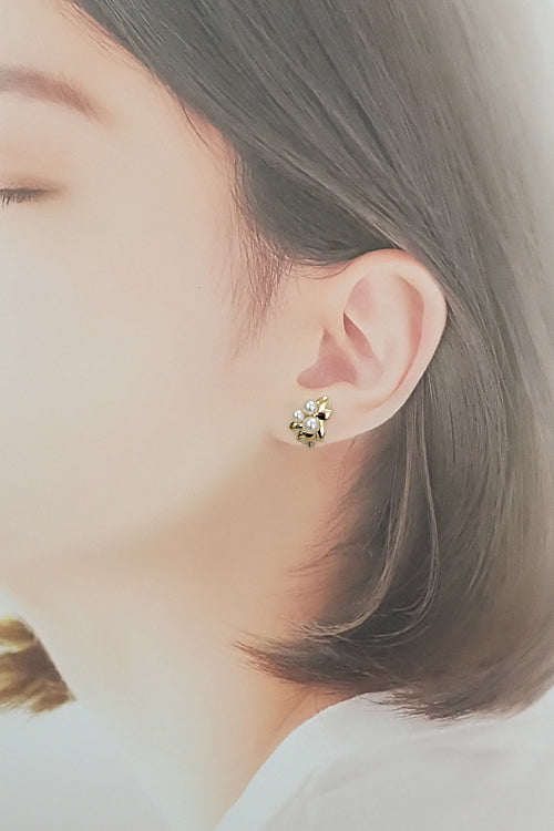 ミキモト アコヤ真珠 イヤリング K18イエローゴールド MIKIMOTO 植物 ボタニカル 葉 リーフ ベビーパール【中古】【906086】