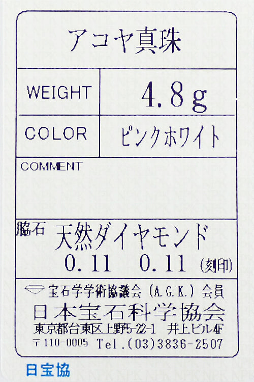 アコヤ真珠 色:ピンクを帯びたクリームホワイトの色合い