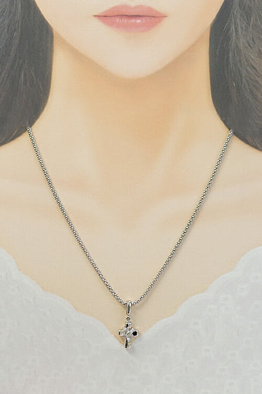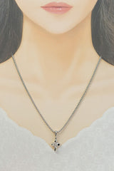キメントの、やや丸みのあるクロスモチーフにダイヤモンドをセットしたモードな雰囲気のネックレスです