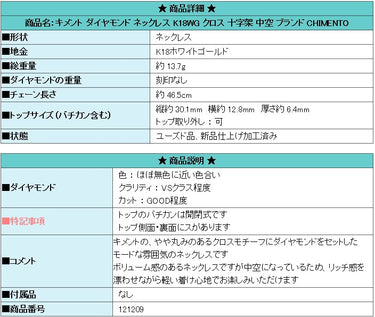 商品名:キメント ダイヤモンド ネックレス K18WG クロス 十字架 中空 ブランド CHIMENTO