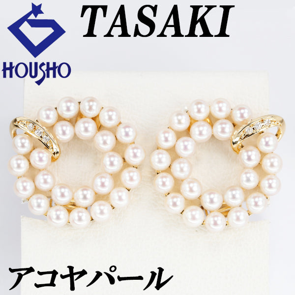 タサキ 田崎真珠 アコヤ真珠 イヤリング ダイヤモンド K18イエローゴールド TASAKI ベビーパール サークル ラウンド 円 丸 透かし【中古】【903051】