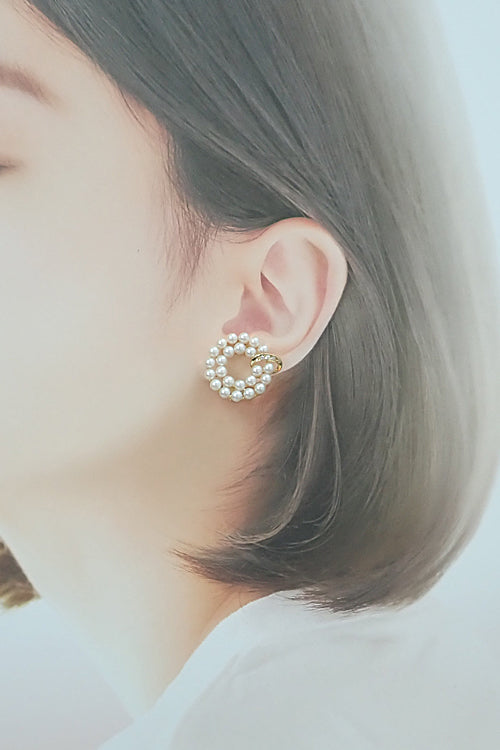 コメント タサキの、2連のサークル状にアコヤパールをならべた、ドレッシーなイヤリングです。さり気なくセットされたダイヤモンドのきらめきがアクセントになっています。