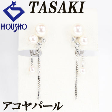 商品名 タサキ 田崎真珠 アコヤ真珠 イヤリング ダイヤモンド K18ホワイトゴールド TASAKI チェーン 揺れる
