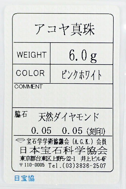 アコヤ真珠 色:ピンクを帯びたクリームホワイトの色合い