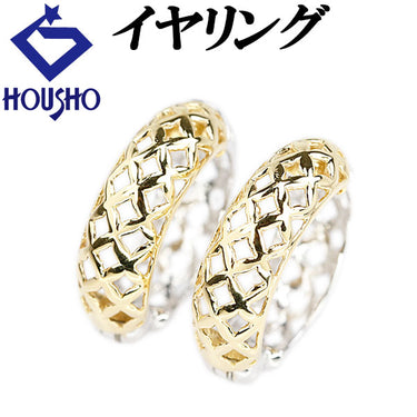 イヤリング K18イエローゴールド K14ホワイトゴールド リバーシブル ピアリング 透かし チェック 地金のみ 石なし フープ【中古】【904285】