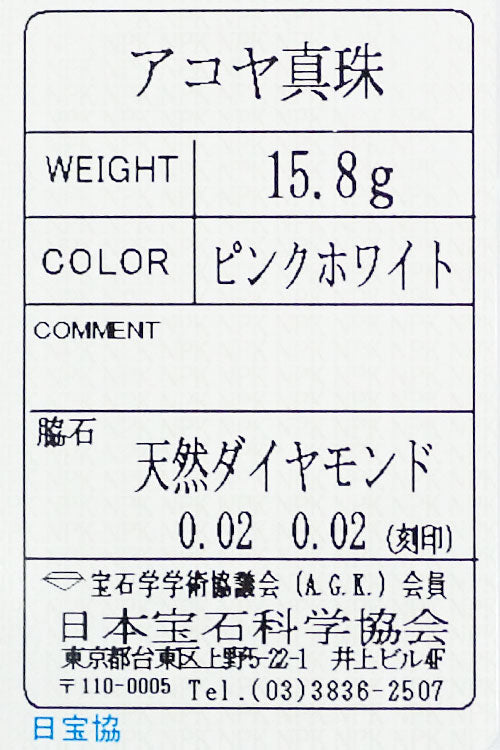 アコヤ真珠 色:ピンクを帯びたクリームホワイトの色合い