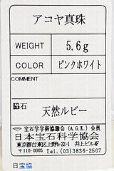 アコヤ真珠 色:ピンクを帯びたクリームホワイトの色合い