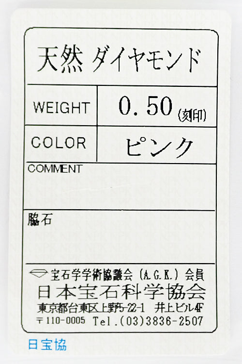 ピンクダイヤモンド 色:淡いピンクの色合い