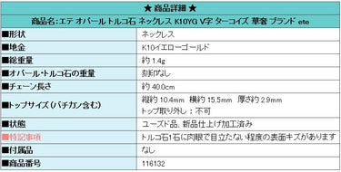 商品名:エテ オパール トルコ石 ネックレス K10YG V字 ターコイズ 華奢 ブランド ete