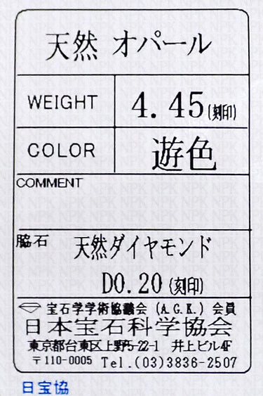 オパールの重量 4.45ct