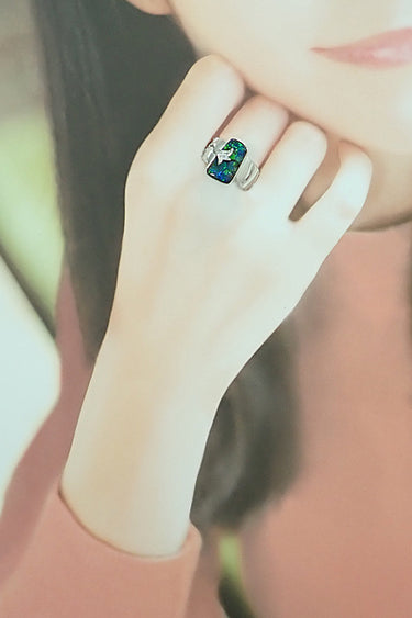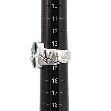 藤平卓 ボルダーオパール リング ダイヤモンド K18ホワイトゴールド TAKASHI FUJIHIRA 作家 デザイナー 花 フラワー 植物 ボタニカル 太め 幅広【中古】【901522】