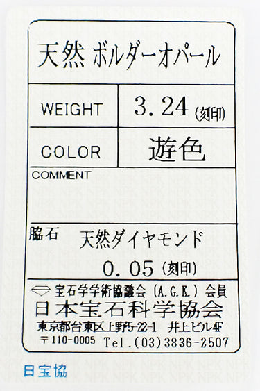 ボルダーオパール 色:ブルー系の地色にオレンジ、イエロー、グリーン、ブルーの斑のある遊色
