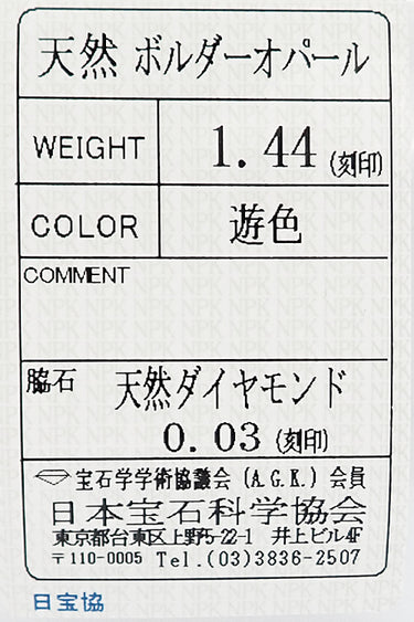 ボルダーオパール 色:ブルーの地色にグリーン、ブルーの斑のある遊色