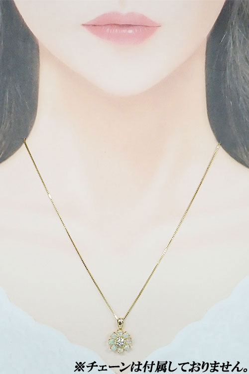 商品名 オパール ペンダントトップ サファイア K18イエローゴールド 花 フラワー 植物 ボタニカル