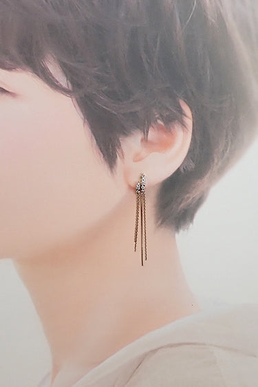 コメント カシケイの、チェーンのフリンジがしなやかな動きを生み出す、エレガントなネイキッドコレクションのピアスです。ブラウンダイヤモンドがあしらわれたリーフ型のデザインが、クールな印象を生み出します。