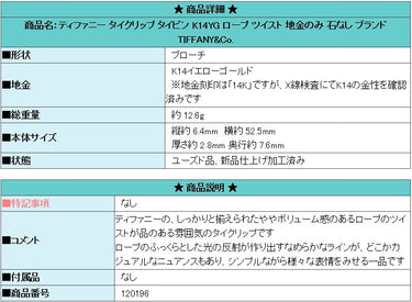 商品名:ティファニー タイクリップ タイピン K14YG ロープ ツイスト 地金のみ 石なし ブランド TIFFANY&Co.