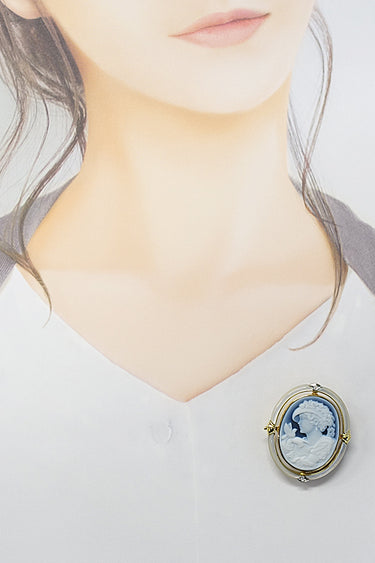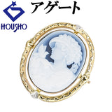 商品名 アゲートカメオ ブローチ シェル ダイヤモンド K18イエローゴールド Pt900 ペンダントトップ リバーシブル 女性 貴婦人
