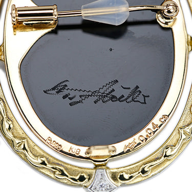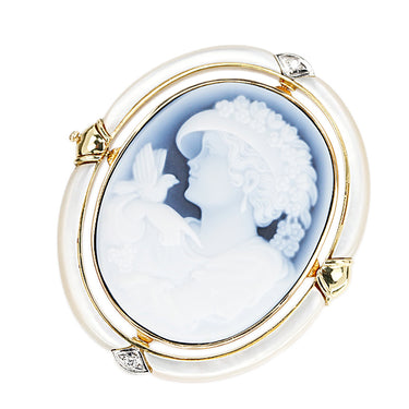 アゲートカメオ ブローチ シェル ダイヤモンド K18イエローゴールド Pt900 ペンダントトップ リバーシブル 女性 貴婦人【中古】【124110】