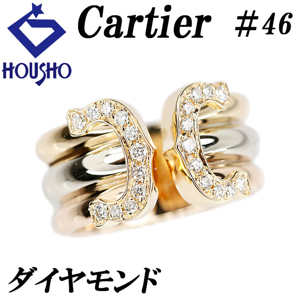 カルティエ ダイヤモンド C2 トリニティ リング K18イエローゴールド K18ホワイトゴールド K18ピンクゴールド CARTIER #46 スリーカラーゴールド オープンリング 幅広 太め【中古】【902912】