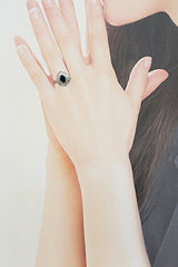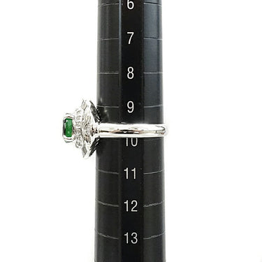 三越の、グロッシュラーライトガーネットの深いグリーンが、シックな輝きをみせるリングです