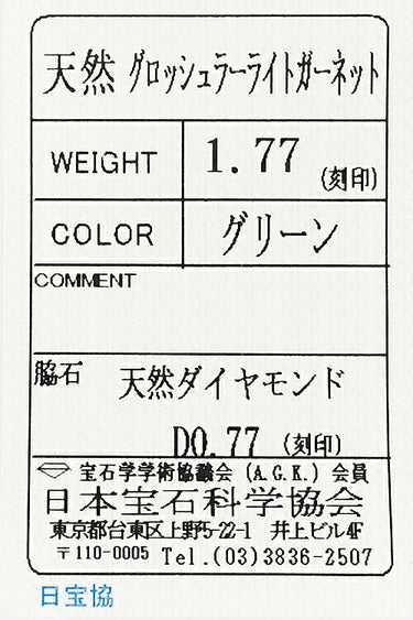 商品名:三越 グロッシュラーライトガーネット リング 1.77ct ダイヤモンド Pt900 ブランド MITSUKOSHI