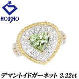 デマントイドガーネット リング ダイヤモンド K18イエローゴールド K18ホワイトゴールド ハート ミル打ち ミルグレイン 透かし【中古】【900682】