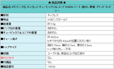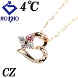 商品名:4℃ ピンク石 ネックレス キュービックジルコニア K10PG ハート 透かし 華奢 ブランド ヨンドシー