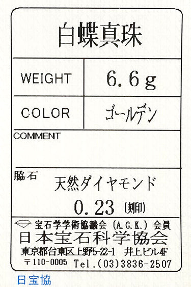 白蝶真珠(南洋真珠) 色:ゴールデンイエロー