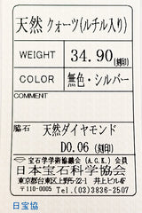 クラリティ:シルバーカラーの針状の鉱物(ルチル)を確認できる