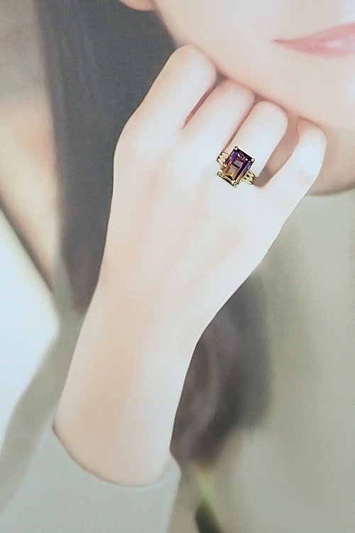 コメント 三越の、パープルとブラウンイエローのグラデーションがミステリアスで美しい、バイカラークォーツのリングです。大ぶりですが澄んだ色合いなので、華美過ぎずエレガントな印象をお手元に添えてくれます。
