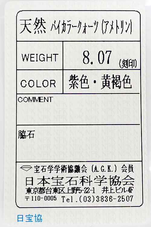 クォーツ 色:透明感のあるパープル・ブラウンイエローのバイカラー