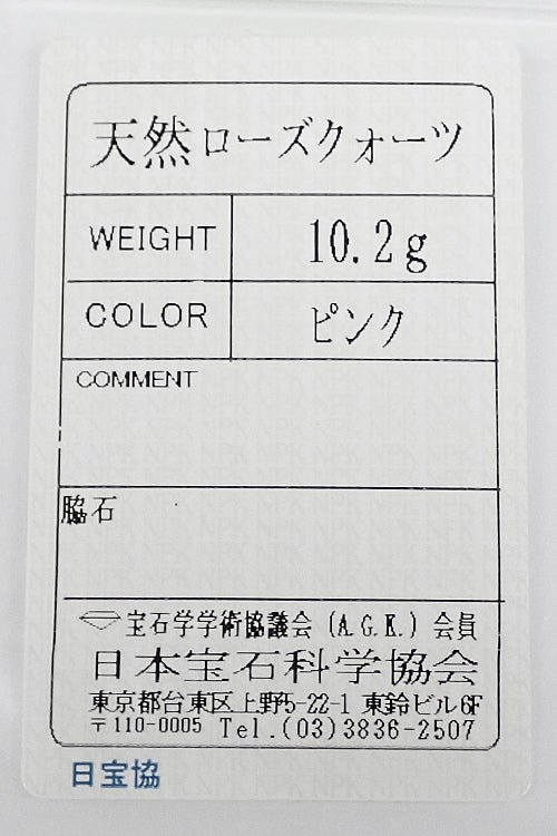 ローズクォーツ 色:半透明のやさしいピンクの色合い