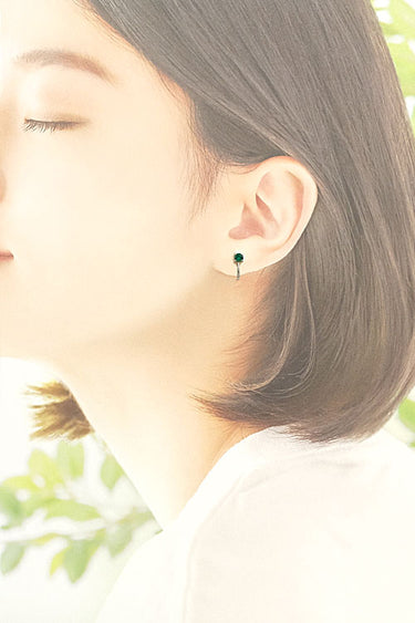 コメント クレサンベールの、再結晶エメラルドをシンプルに一粒セットしたイヤリングです。鮮やかなグリーンがさわやかで生き生きとした印象をもたらしてくれます。