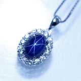 コメント クレサンベールの、はっきりとしたスター効果がお楽しみいただける深い色合いの再結晶スターサファイアをセットした、クラシカルなネックレスです。再結晶スターサファイアは、京セラ独自の宝石合成技術や結晶技術によって生まれた、天然石と同じ組成を持つ人工の宝石です。