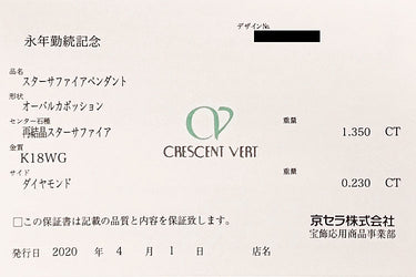 商品名 クレサンベール 京セラ スターサファイア ネックレス ダイヤモンド K18ホワイトゴールド CRESCENT VERT 再結晶