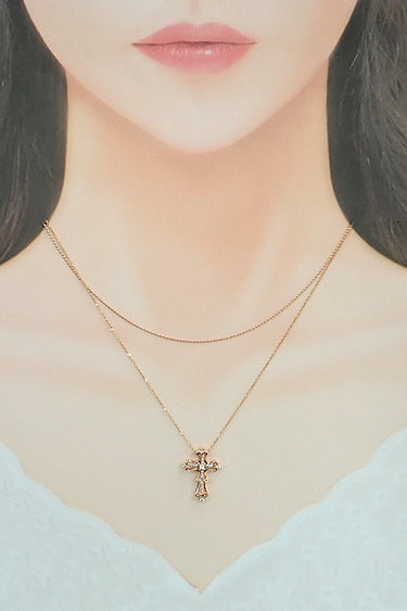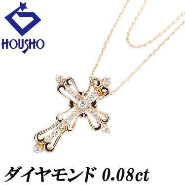 商品名 ダイヤモンド ネックレス K18ピンクゴールド クロス 十字架 ダブル 透かし 重ね付け風