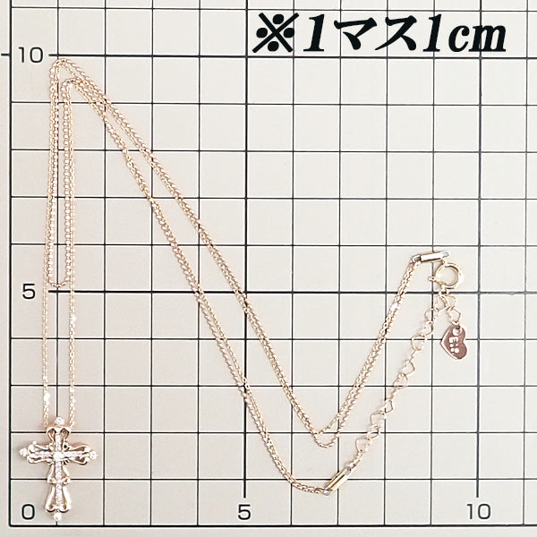 ダイヤモンド ネックレス K18ピンクゴールド クロス 十字架 ダブル 透かし 重ね付け風【中古】【901695】
