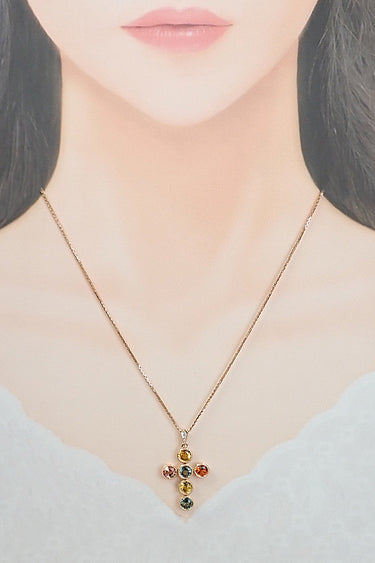 コメント 落ち着いたアースカラーのサファイアに温かみを感じるクロスモチーフのネックレスです。サファイアを縁どるミルグレインがクラシカルな雰囲気を醸します。