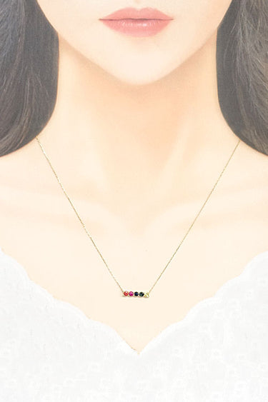 コメント 5色のカラフルなサファイアが一列にセットされた、エネルギッシュな雰囲気のネックレスです。細めのチェーンなのでカジュアルにお召いただけます。