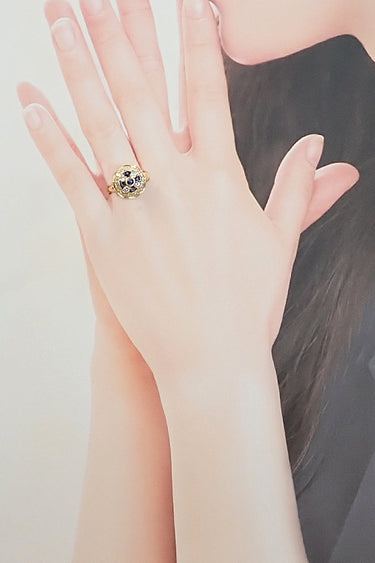 コメント お花のようなモチーフにつるりとしたブルーサファイアがアクセントになった、クラシカルな雰囲気のリングです。角の少ないなめらかなラインで構成されており、お手元にやわらかな印象をもたらします。