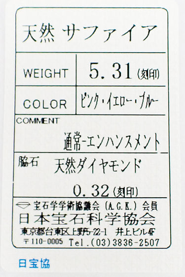 サファイア 色:ピンク、淡いイエロー・ブルー