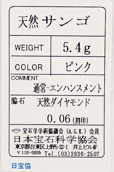 コメント タサキの、やさしいピンクの色合いが可愛らしい、サンゴのリングです。全体的に落ち着きのある印象で、サイドのメレダイヤモンドがさり気なく華やかさを添えてくれます。