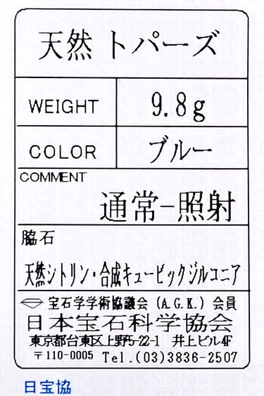 気になることがあったので質問したのですが、すぐ返信があり購入前から安心感がありました。配送も早く、説明通り、鑑定書も付いていて安心しました。今後も入荷をチェックして気にいったものがあれば購入したいと思いました。
