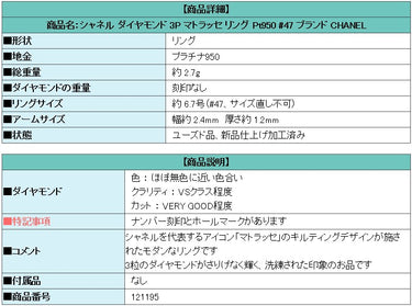 商品名:シャネル ダイヤモンド 3P マトラッセ リング Pt950 #47 ブランド CHANEL