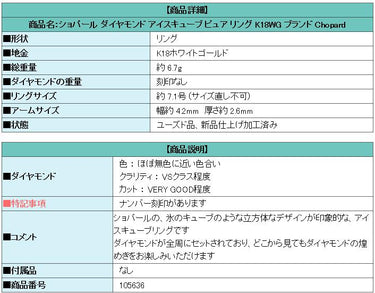 商品名:ショパール ダイヤモンド アイスキューブ ピュア リング K18WG ブランド Chopard