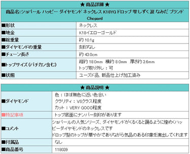 商品名:ショパール ハッピー ダイヤモンド ネックレス K18YG ドロップ 雫 しずく 涙 なみだ ブランド Chopard
