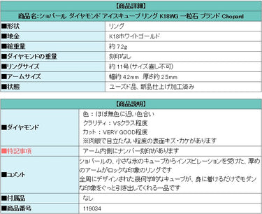 商品名:ショパール ダイヤモンド アイスキューブ リング K18WG 一粒石 ブランド Chopard